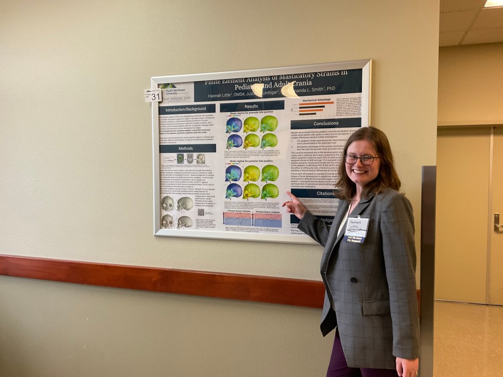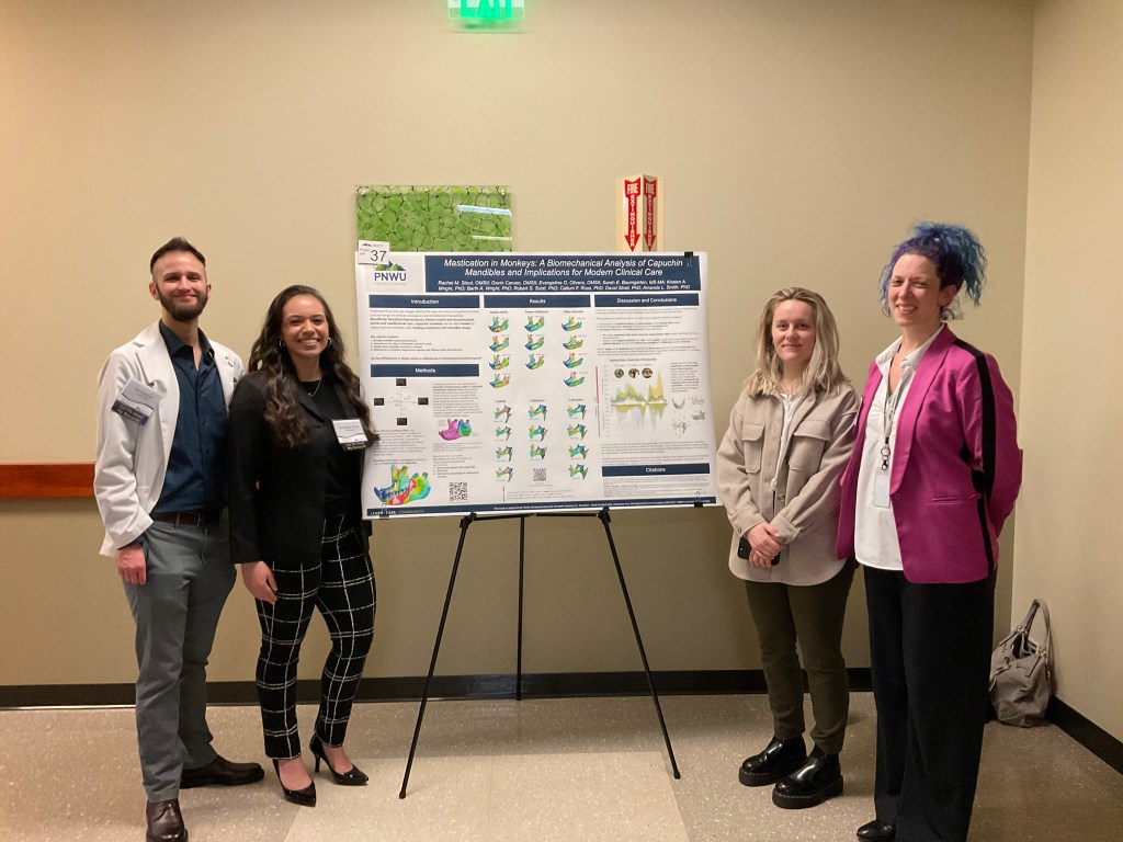 Rachel Stout, Evangelina Olivera and Gavin Caruso showed off results of their biomechanical modeling of capuchin mandibles. Their work is part of a large multidisciplinary project looking at relationships between dietary ecology, mandibular shape and biomechanical performance.